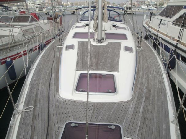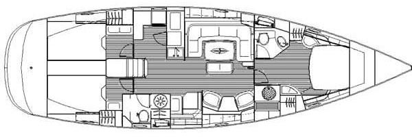 | Attrezzature Esterne | Banzigo, doccia esterna, doppia timoneria, sprayhood, serbatoio acque nere, tendalino bimini top, tender D250, fuoribordo (6 HP), verricello elettrico, elica di prua, drizza supplementare per spi, tavolo pozzetto in teak, kit ancoraggio e dotazioni di ormeggio, passerella scaletta |