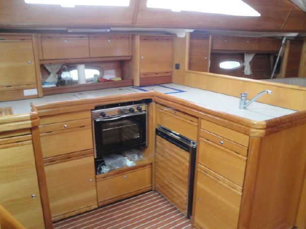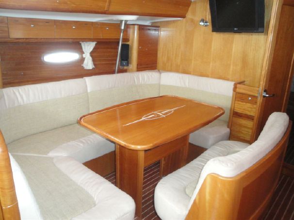 | Attrezzature Interne | Acqua calda, HIFI con caricatore CD, , cassetta attrezzi, binocolo, bussola rilevamento, carte nautiche, cinture sicurezza, coperte, cucina gas a tre fuochi, forno gas, 2 ampi frigoriferi, doppio lavello, lenzuola, portolano, prese 220V, pronto soccorso, stoviglie, dotazioni di sicurezza per 10 pax, tavolo interno abbattibile, divano, divanetti contrapposto |