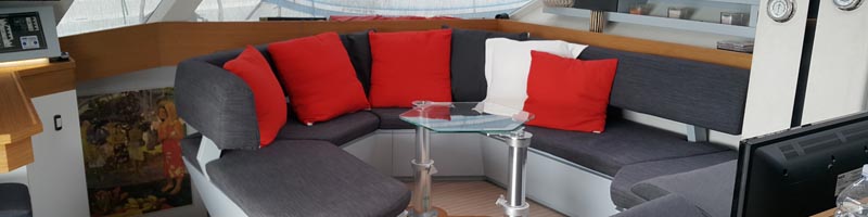 | Attrezzature Interne | Aria condizionata, Acqua calda, HIFI con caricatore CD, ventilatore in ogni cabina, cassetta attrezzi, binocolo, bussola rilevamento, carte nautiche, coperte, cucina gas, forno gas, 2 ampi frigoriferi, congelatore, doppio lavello, tavolo dinette abbattibile, portolano, prese 220V con Inverter interno, pronto soccorso, stoviglie |