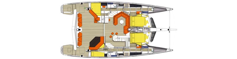 Questo catamarano, costruito nel 2011, è particolarmente abitabile sia sul ponte che sottocoperta.