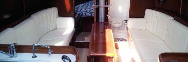 | Attrezzature Interne | Acqua calda, HIFI con caricatore CD, cassetta attrezzi, binocolo, bussola rilevamento, carte nautiche, coperte, cucina gas, forno gas, frigorifero, divani contrapposti, portolano, prese 220V, pronto soccorso, stoviglie |