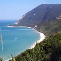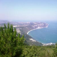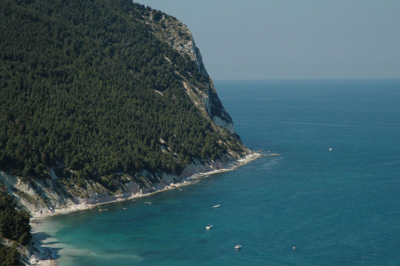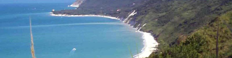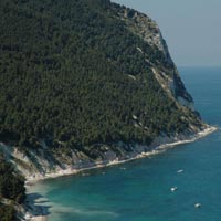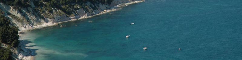 PROMONTORIO DEL CONERO La riviera del sogno - dalla base di Ancona Marina Dorica la meta più vicina e affascinante è il promontorio del Conero a circa 1 ora di vela. E' l'unico tratto di costa frastagliata del litorale adriatico, una maestosa sequenza di falesie a picco sul mare che interrompono la lunga striscia di sabbia che corre da Trieste al Gargano. Intorno al promontorio del Conero invece, il paesaggio è vario e stupendo, con piccoli borghi sul mare, raccolti in un fazzoletto di terra come l'oasi di Portonovo, l'aristocratica Sirolo e infine Numana dove si può ormeggiare nel porticciolo. Un trionfo della natura con gioielli raggiungibili solo via mare come i bellissimi scogli delle Due Sorelle, i faraglioni di Sirolo, il Trave, una spada di roccia affiorante dall'acqua dove ormeggiare all'ancora per una notte, i Lavi davanti a Sirolo, sculture di pietra da cui tuffarsi nelle acque più blu dell'adriatico.