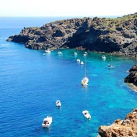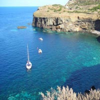PANTELLERIA Isola vulcanica che nasce dagli abissi, il mare che la circonda si appropria di tutte le sfumature e gradazioni di blu, dalle tonalità più chiare e cristalline e quelle più intense e profonde. Nera per il colore della pietra lavica è ricchissima di vegetazione, la più famosa coltivazione è quella delle uve di Zibibbo da cui si estrae il pregiato Moscato Passito. Nell’isola si trovano complessivamente 6 approdi: il principale è quello di Pantelleria Paese; poi vi sono Scauri, Porto Dietro Isola, Cala di Levante, Cala di Tramontana e Campobello. Ricca di sorgenti termali che sgorgano con temperature che possono raggiungere i 70°C Caratteristici sono i giardini circondati da muri per proteggerli dai venti che a volte soffiano impetuosi e lo Specchio di Venere, un laghetto di circa 500 m. di diametro alimentato da sorgenti sotterranee.