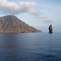 STROMBOLI Il vulcano, un cono regolare, alto più di 900 metri, venne chiamato nell’antichità "Faro del Mediterraneo", è infatti, forse, l’unico vulcano attivo al mondo in costante attività da almeno 2000 anni. L’arrivo all’Isola durante la notte vi emozionerà con il magnifico spettacolo della sua eruzione. Le sue coste sono inospitali, non esiste infatti alcun rifugio in caso di vento forte, proveniente da qualsiasi direzione e i soli punti di ancoraggio, nonchè unici centri abitati sono Ficogrande e Ginostra.