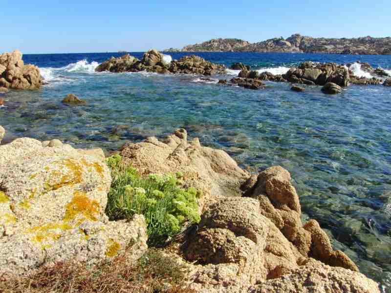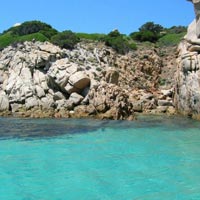 CAPRERA Nonostante sia inferiore per estensione a La Maddalena, ha uno sviluppo costiero superiore 45,5 km, dovuto alla costituzione del promontorio granitico lungo e stretto che si protende fino alla Punta Rossa, sede dal 1887 di una base della Marina Militare. L'estrema costa meridionale di Caprera è una zona di accentuata debolezza ed instabilità morfologica; una profonda ingressione del mare forma il meraviglioso Porto Palma. L'intera costa orientale di Caprera e quella settentrionale sono impressionanti scogliere granitiche pressoché inaccessibili, di grande suggestione e bellezza, formate dal versante più scosceso del lungo massiccio di Monte Teialone.